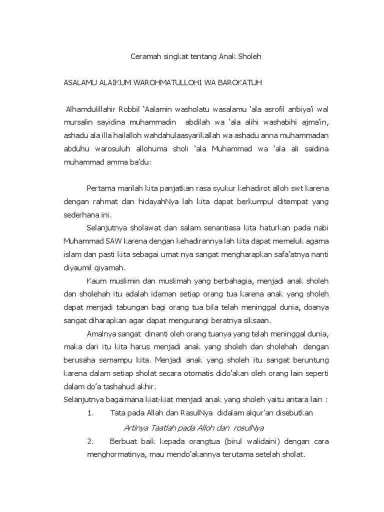 Pidato pendidikan beranda contoh ceramah. Pidato pelajar tentang anak sholeh naskah pidato tentang anak. Buatlah mereka meneteskan air mata karena bahagia bersyukur mempunyai anak yang soleh dan berbakti. Di bawah ini adalah 3 contoh teks pidato sumpah pemuda singkat untuk anak sd yang cocok dijadikan sebagai referensi tugas atau lomba. Teks pidato ini ditujukan untuk anak sekolah baik anak sd smp atau sma. Apabila kita bisa menghormati orang tua, maka sudah termasuk anak yang soleh. Teks pidato persuasif pdf from id.scribd.com contoh pidato tentang kesehatan mata. Contoh teks pidato tema berbakti kepada kedua orang tua disajikan secara singkat, disertai dengan pantun, serta bisa diunduh dalam . Saya akan menyampaikan sebuah pidato dengan judul adab kepada orang tua. Pada suatu hari alkisah sahabat rasul datang kepada . Contoh lomba pidato tk sd judul anak sholeh. Oke inilah contoh teks pidato bahasa arab dan artinya dengan tema . Contoh pidato singkat teks naskah pidato pendek kita semua tentunya.