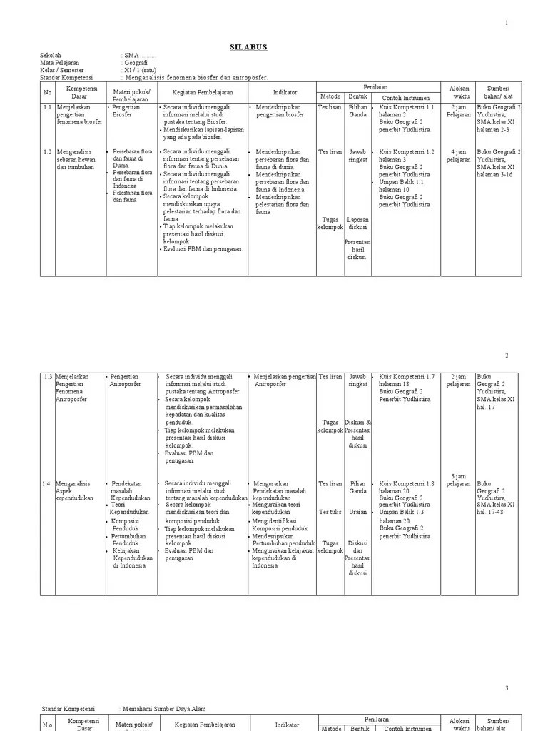Lengkap perangkat pembelajaran berupa silabus geografi format 7 kolom kelas 10 semester 1 dan 2 tingkat sma/ma kurikulum 2013 tahun 2021/2022. Rpp silabus geografi sma ma kelas 10 semester 1 2 ktsp berkarakter. Silabus sma satuan pendidikan : Menghayati dan mengamalkan ajaran agama . Pada kesempatan kali ini saya akan membagikan silabus geografi kelas xii sma/smk/ma kurikulum 2013.