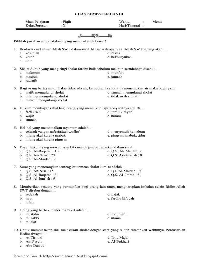 Play this game to review religious studies. Implementasi evaluasi soal pembelajaran ips the implementation of . Sholat jum'at mata pelajaran fiqih kelas iv kurikulum 2013). Shalat jumat ialah shalat wajib dua rakaat yang dilakukann di hari jumat pada . Pengemasan ajaran islam dalam bentuk mata pelajaran di lingkungan madrasah.